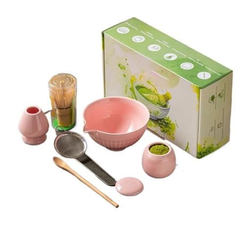 6 Pcs Matcha Set - Ceramic Bowl Spout Whisk Holder Tea Powder Canister Complete Kit