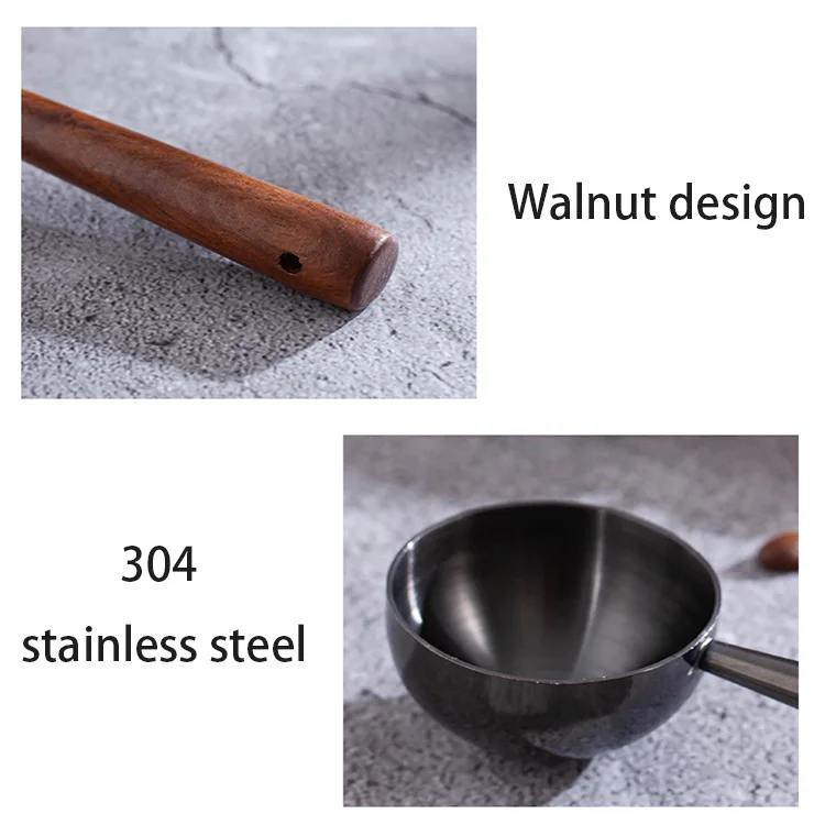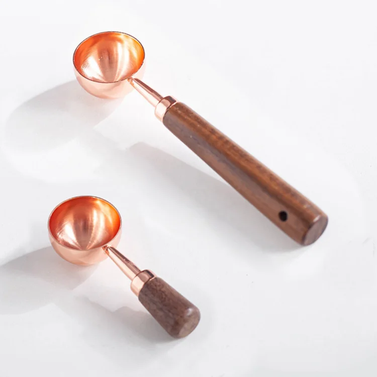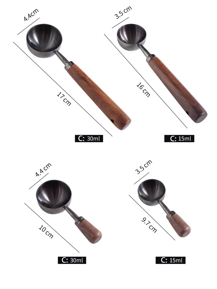 Custom Stainless Steel Measuring Spoons Coffee Scoop 15, 30Ml Long Walnut Wooden Handle Spoon