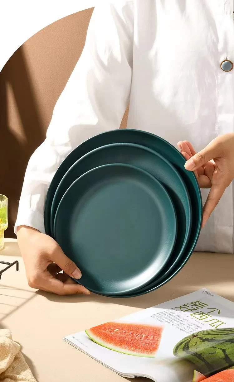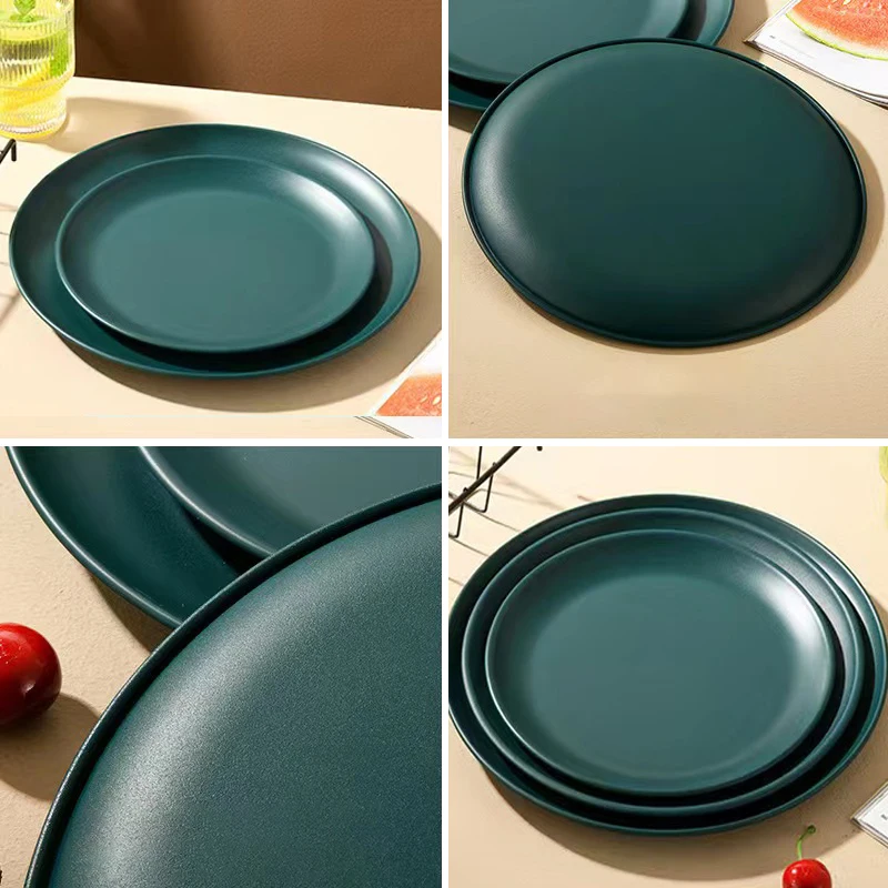 European-style creative stainless steel barbecue dishes plates dark green round snack western food