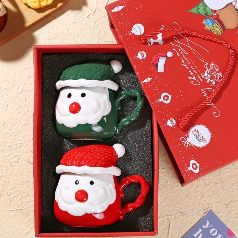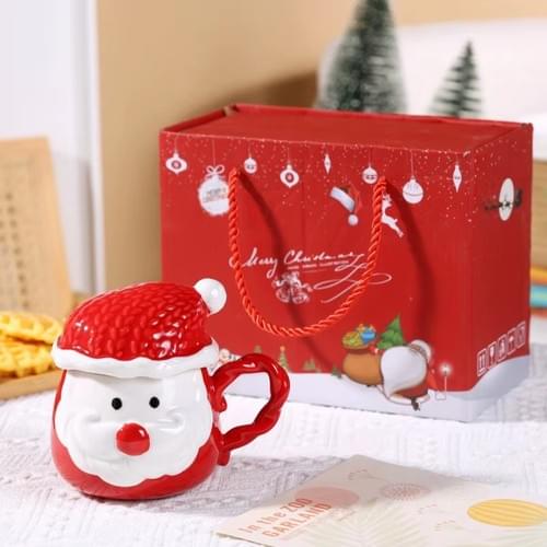 Harmony Christmas Gift Ceramic Cup with Lid – Cute Cartoon Santa Claus Mug for Couples & Household