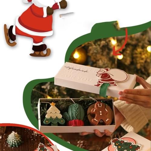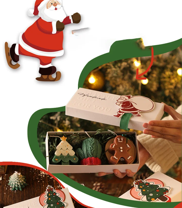 Festive Candle Design – Shaped like Christmas trees and Santa Claus, perfect for holiday atmosphere.