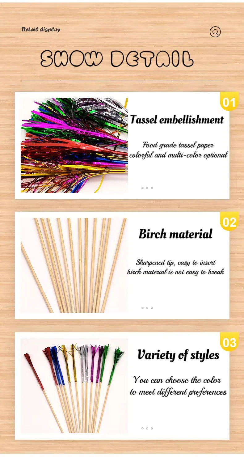 Safe & Durable – Made of high-quality food-safe materials with smooth wooden sticks and shiny foil tops.