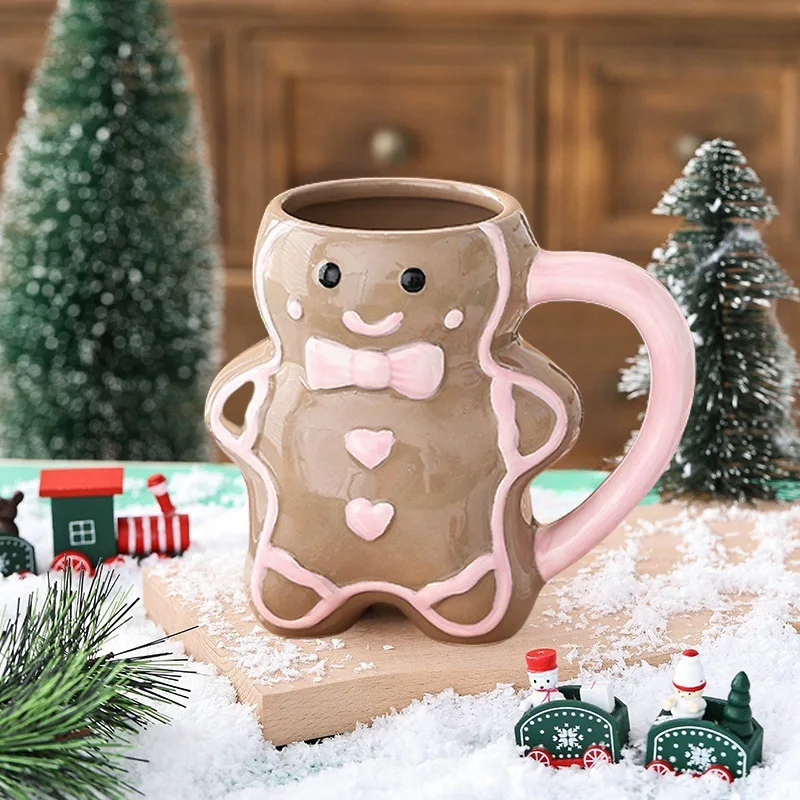 Harmony Wholesale 400ml Custom Christmas Cookie Holder Mug, Funny Gingerbread Ceramic Cup Gift