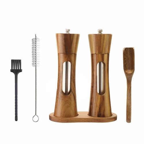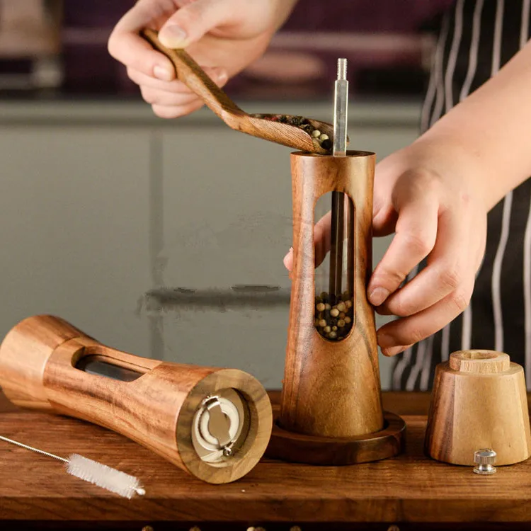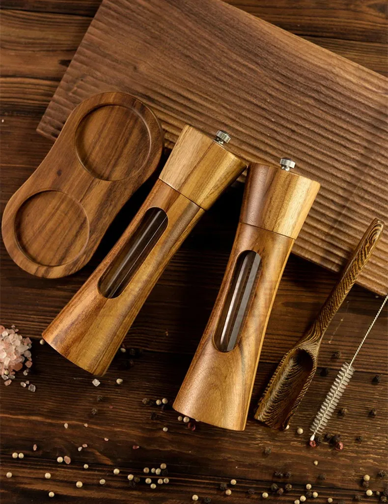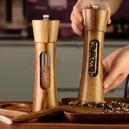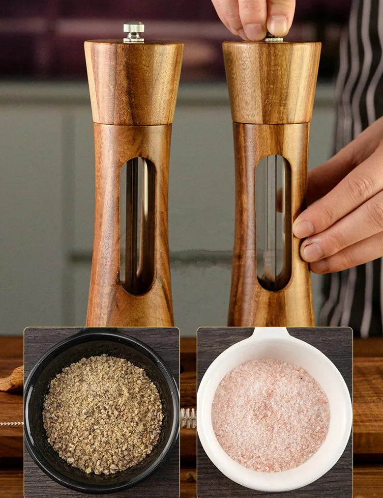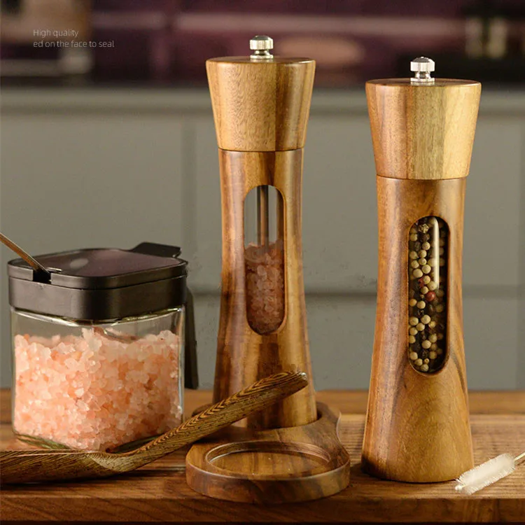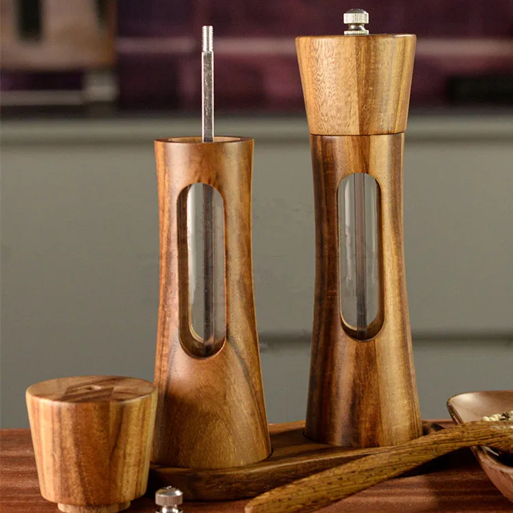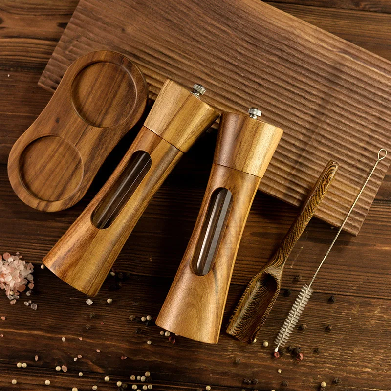 OEM Acrylic Visible Window Refillable Acacia Wooden Salt and Pepper Grinders