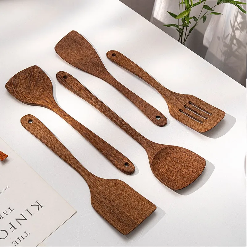 OEMWooden Cooking Utensils Natural Kitchen Set Heat Resistant Non Stick Wenge Wooden Kitchen Spatula